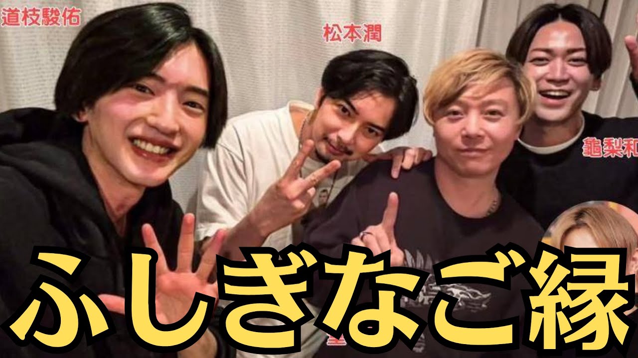嵐の松本潤がインスタグラムのストーリーズを更新。「ひょんなことから初代、2代目、3代目と5代目」とつづり、初代の堂本剛(KinKi Kids)、2代目の松本、3代目の亀梨和也(KAT-TUN)、5代目の道枝駿佑(なにわ男子)の4ショットを投稿。