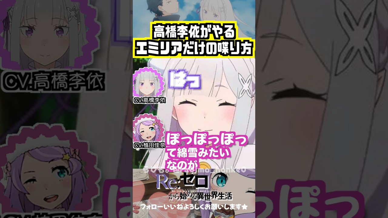 1. 別作品の熱血魔導師の役の方を先に知ってたので、エミリアの担当がりえりーだと知った時はめちゃ驚いたと同時に感動もしました。
