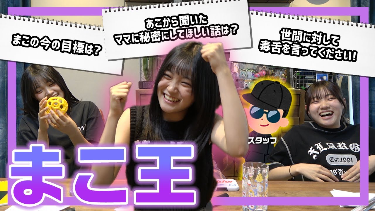 今回はまこについての問題を30問用意してあって、回答する人はろこ、あこ、スタッフの3人になっていて、誰が一番まこについて詳しいのかを競います!