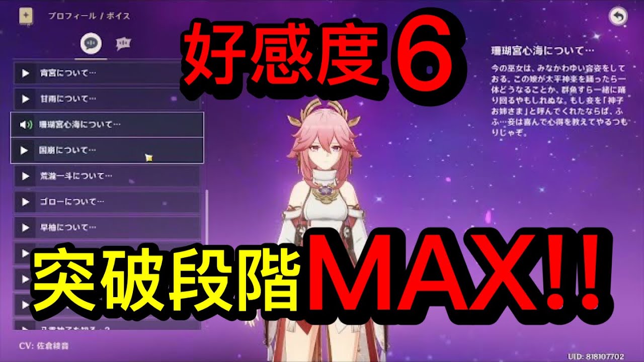 #原神#Genshin#八重神子#ボイス#セリフ#YaeMiko#佐倉綾音#好感度#ヤエミコ#やえみこ#最速