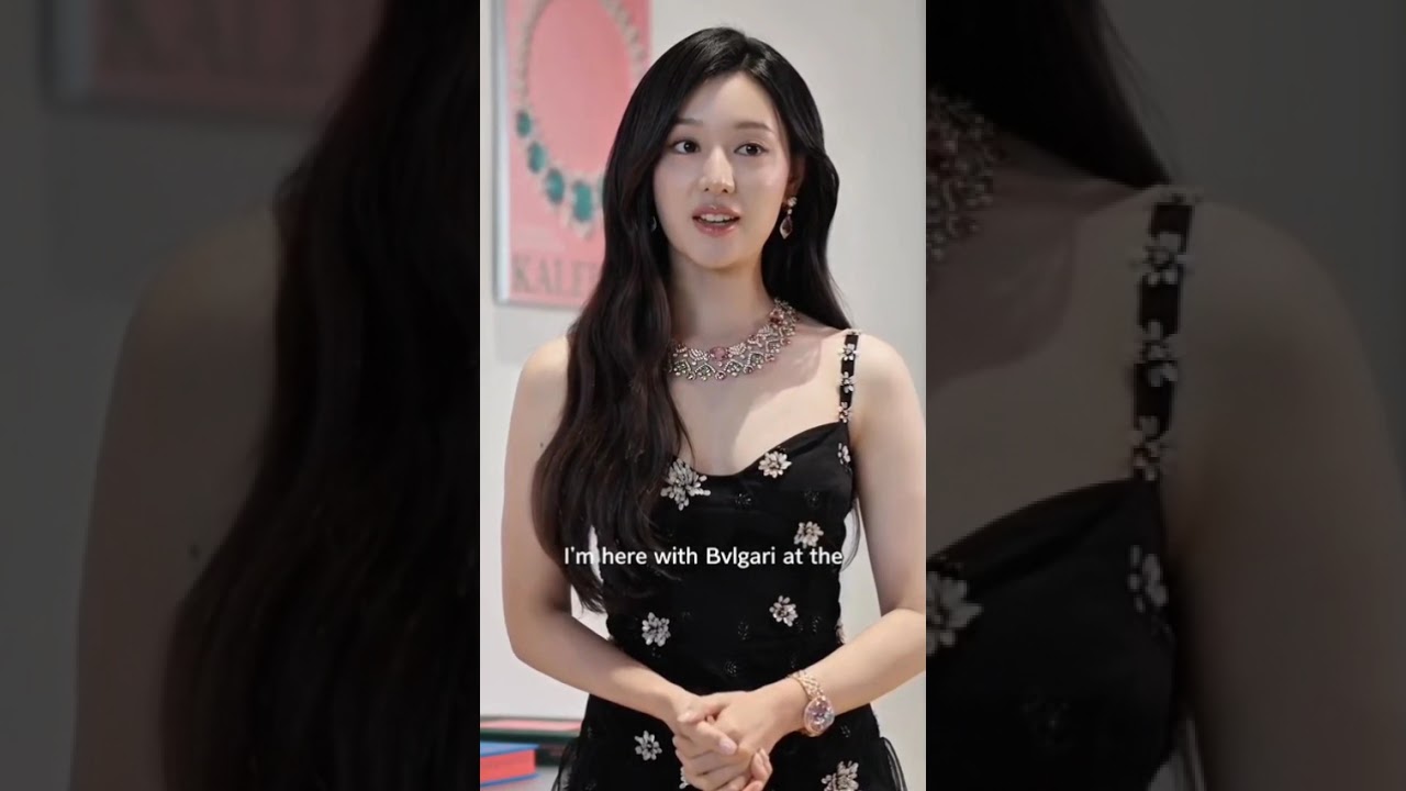 One line in English and the scene gains color—her photocall small talk is high-jewelry level. 🤞😍💖👍