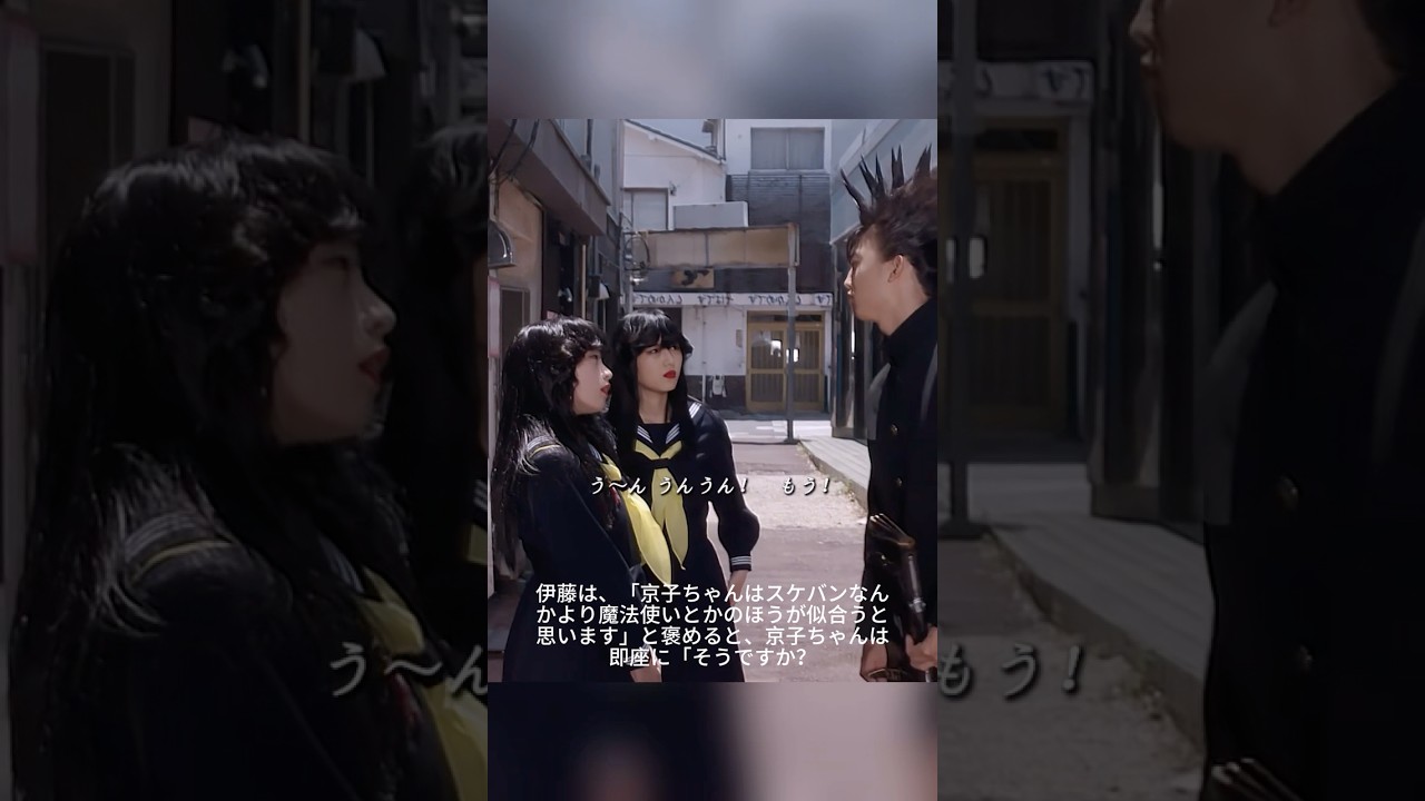 【変身前:最強の女魔王 👹】 成蘭女子校の最強スケバン・京子(橋本環奈)が、路地裏で3人の雑魚をボコボコに! 💥 「次にやったらマジでぶっ殺すぞ!」と、まさに凶神悪鬼の形相! 😱