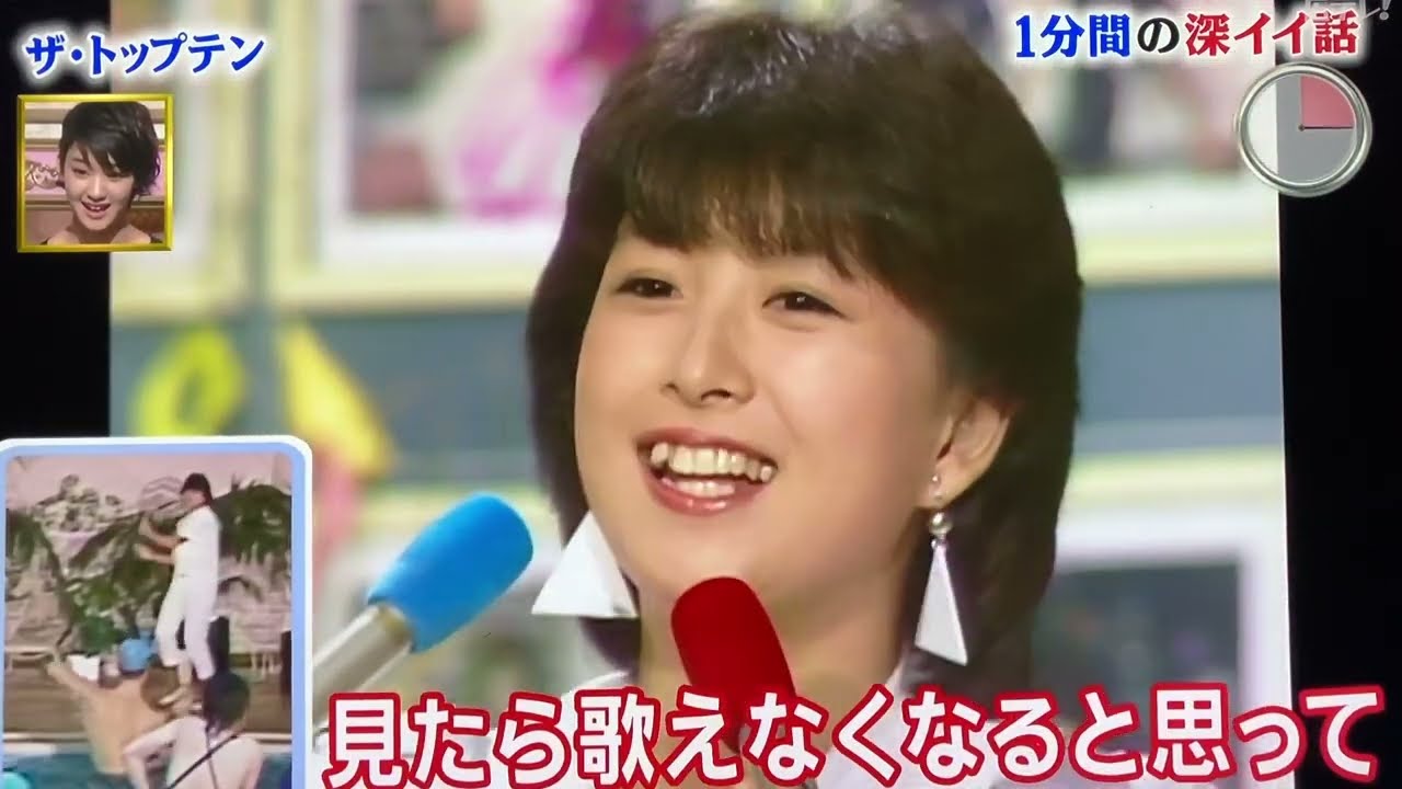 こんな至近距離の面白パフォーマンスに耐えて歌いきった奈保子さんは立派です❤。