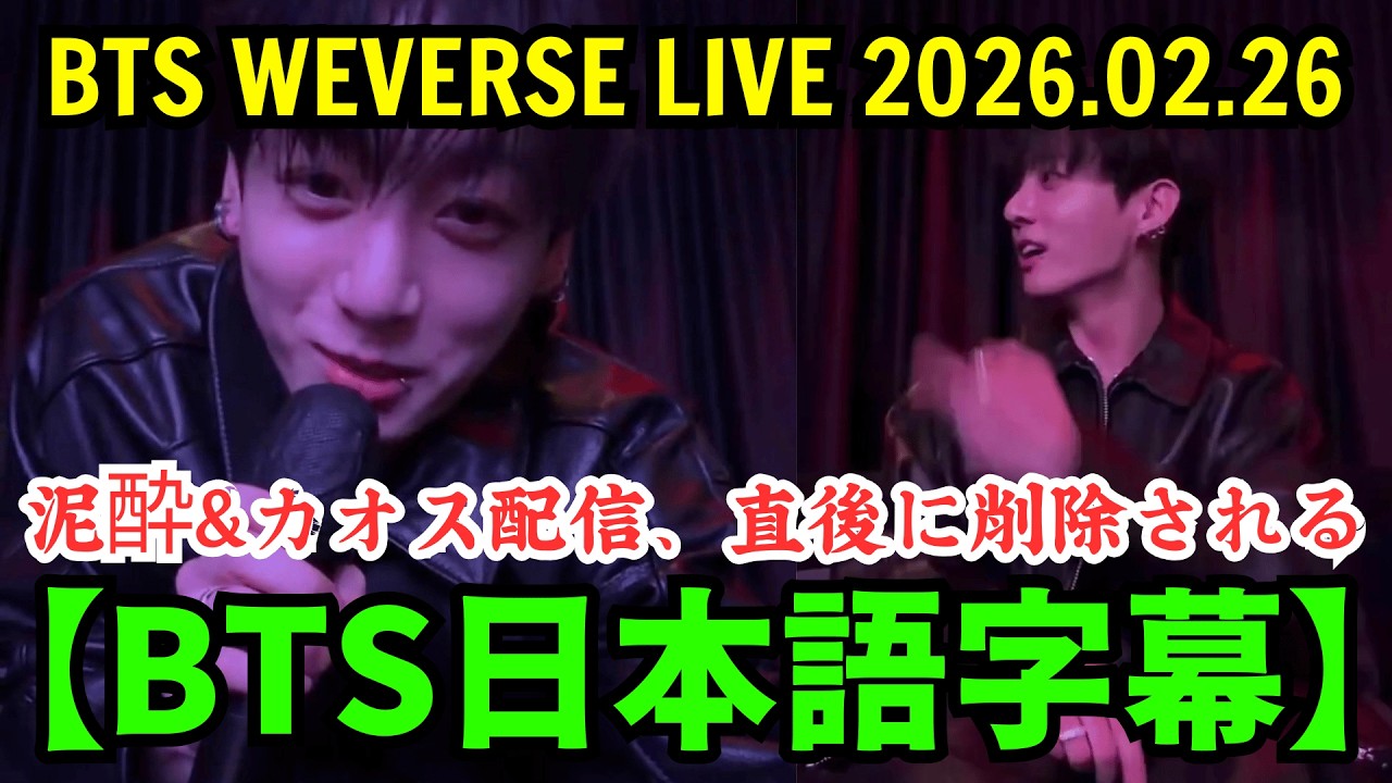 【BTS日本語字幕】Weverseライブ【2026年2月26日】ジョングクの泥酔&カオス配信、直後に削除される。ジョングクの喫煙告白が話題…