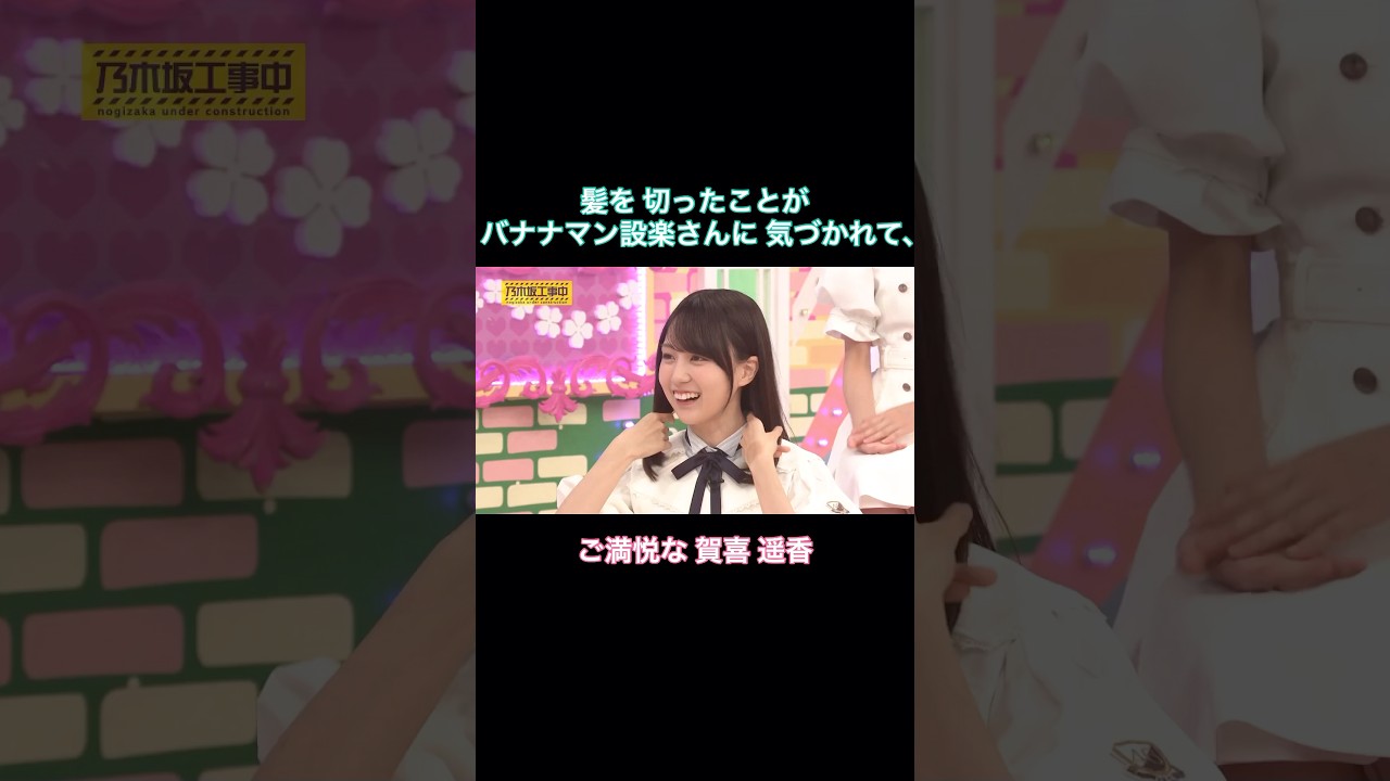 「髪切りましたー!」で設楽さんと同じポーズをする賀喜。めっちゃ嬉しそうなのが伝わる😊