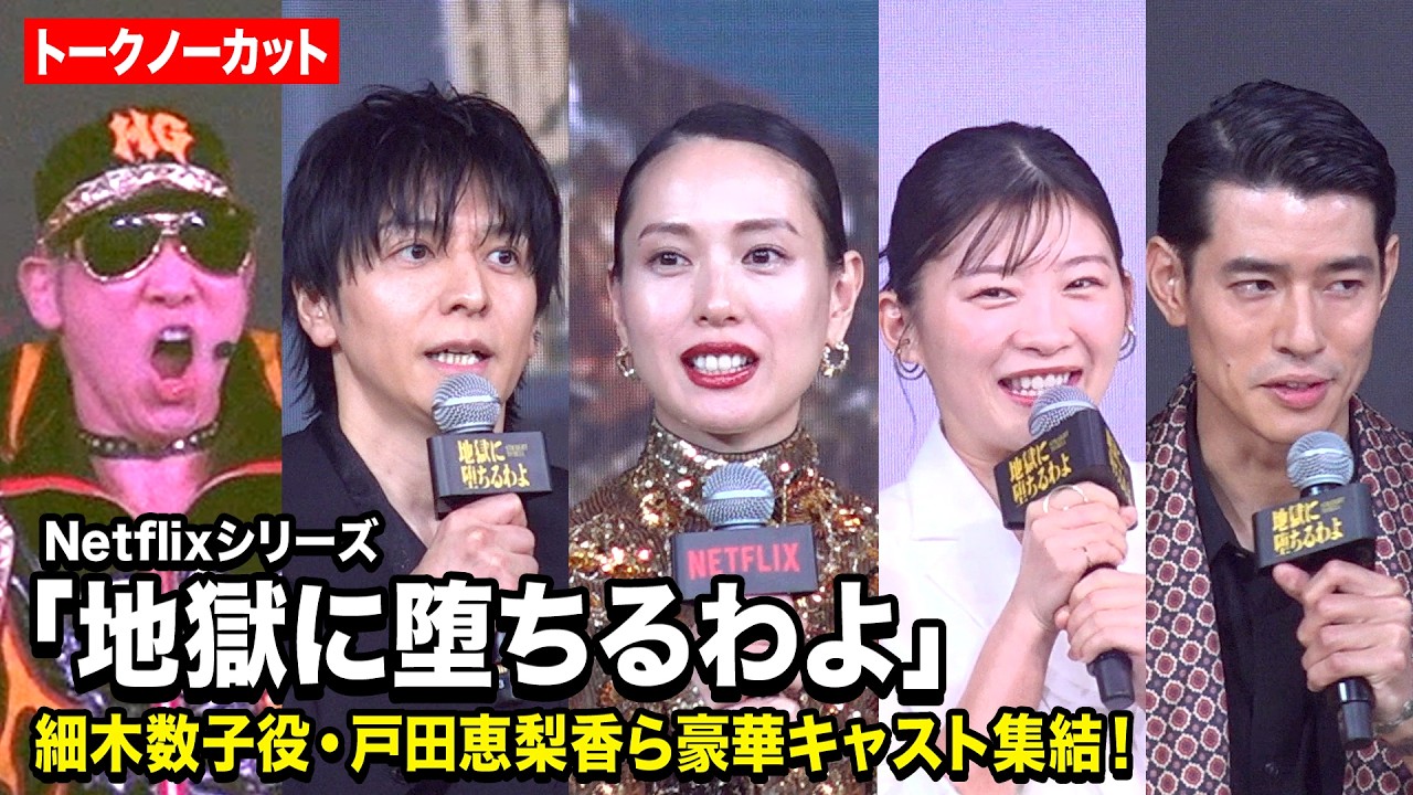 俳優の戸田恵梨香、伊藤沙莉、生田斗真、三浦透子、田村健太郎、中島歩、細川岳、瀧本智行監督、ゲストのレイザーラモンHGが、都内で行われたNetflixシリーズ『地獄に堕ちるわよ』の配信記念パーティーに登壇した。
