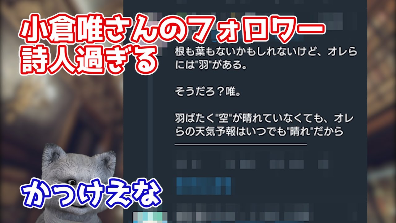 何がかっこいいのか自分にはさっぱり分かりません。はっきり言いますが、凄く発言が痛々しいし、見ていて気持ちが悪るいし、小倉唯さんにとても迷惑だと思いました。あなたは何を見てかっこいいと思ったんですか?ネタで言ってるなら人間として終わってますよ?あのリプを見た小倉唯さんは可哀想でしかありません。