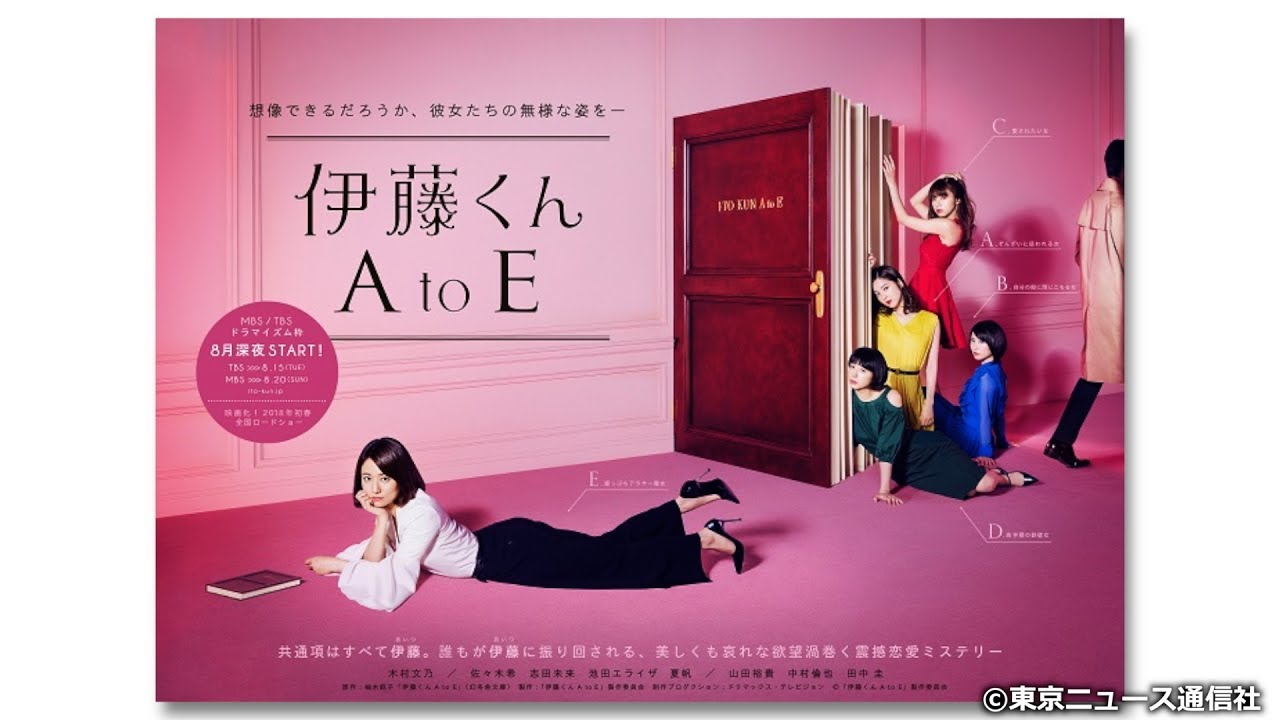 TBSで8月15日深夜、MBSで8月20日深夜より放送が開始される、木村文乃主演の連続ドラマ「伊藤くん A to E」のポスタービジュアルと、キャストの木村、佐々木希、志田未来、池田エライザ、夏帆のポスター撮影メイキング映像が解禁されました。