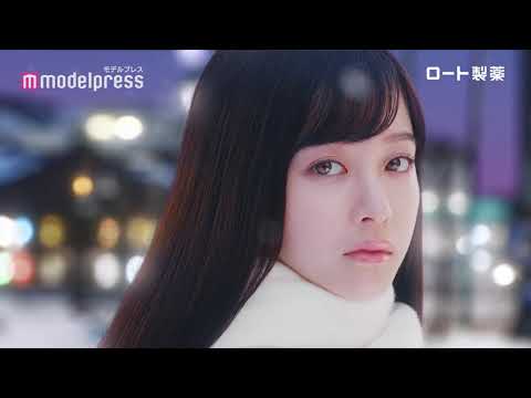 雪が降る街に佇む橋本。体温でとろけ出すメルティクリームリップの魅力を表現している。ラストカットで「口どけする?」と肩をすくめて可愛らしく話しかける様子が印象的だ。