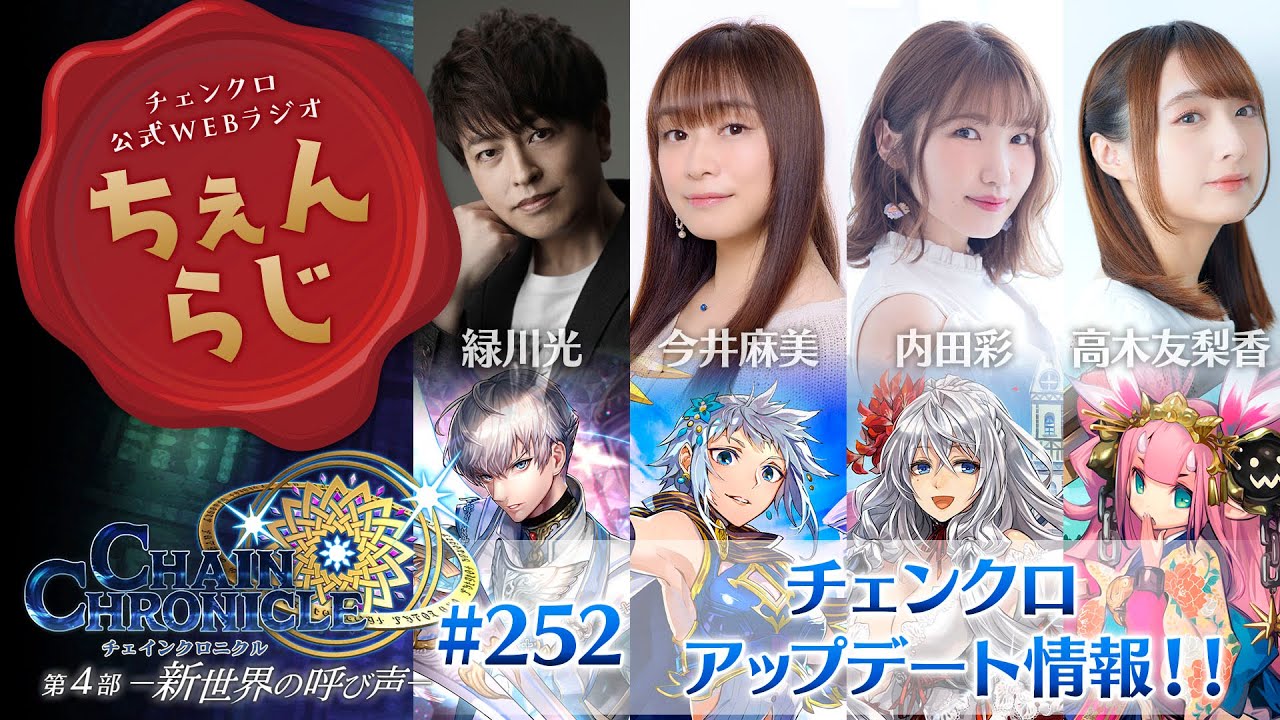 メインパーソナリティは、「チェンクロ」で多数のキャラクターボイスを担当する声優の緑川光さん、今井麻美さん、内田彩さん、高木友梨香さんの4名。