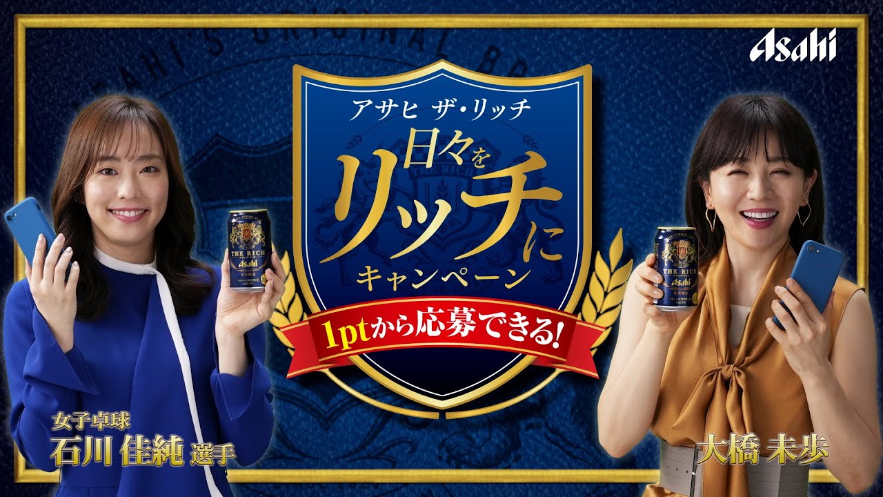 卓球 石川佳純選手、大橋未歩さんが出演する「アサヒ ザ・リッチ 日々をリッチにキャンペーン」のWebCM 出演者:石川佳純、大橋未歩 ▼アサヒ ザリッチ ブランドサイト https://www.asahibeer.co.jp/rich/ Tags:CMアサヒアサヒ ザ・リッチアサヒビール大橋未歩石川佳純 コメントを残すコメントを投稿するにはログインしてください。