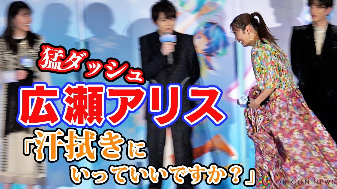 その後、ほかのキャストのトーク中に広瀬は「すみません…。汗ふきにいっていいですか?」とポツリ。ダッシュで壇上から降りると、無数のシャッター音に「カメラ撮らないで~」と照れまくりだったが、梶が「そうですよ! 僕を撮ってください!」とフォローした。数分後に壇上に戻ってくるとキャスト陣は「おかえりなさい」と迎え入れ、広瀬は「すみません…。どうぞお話ください…」と恐縮しきりだった。