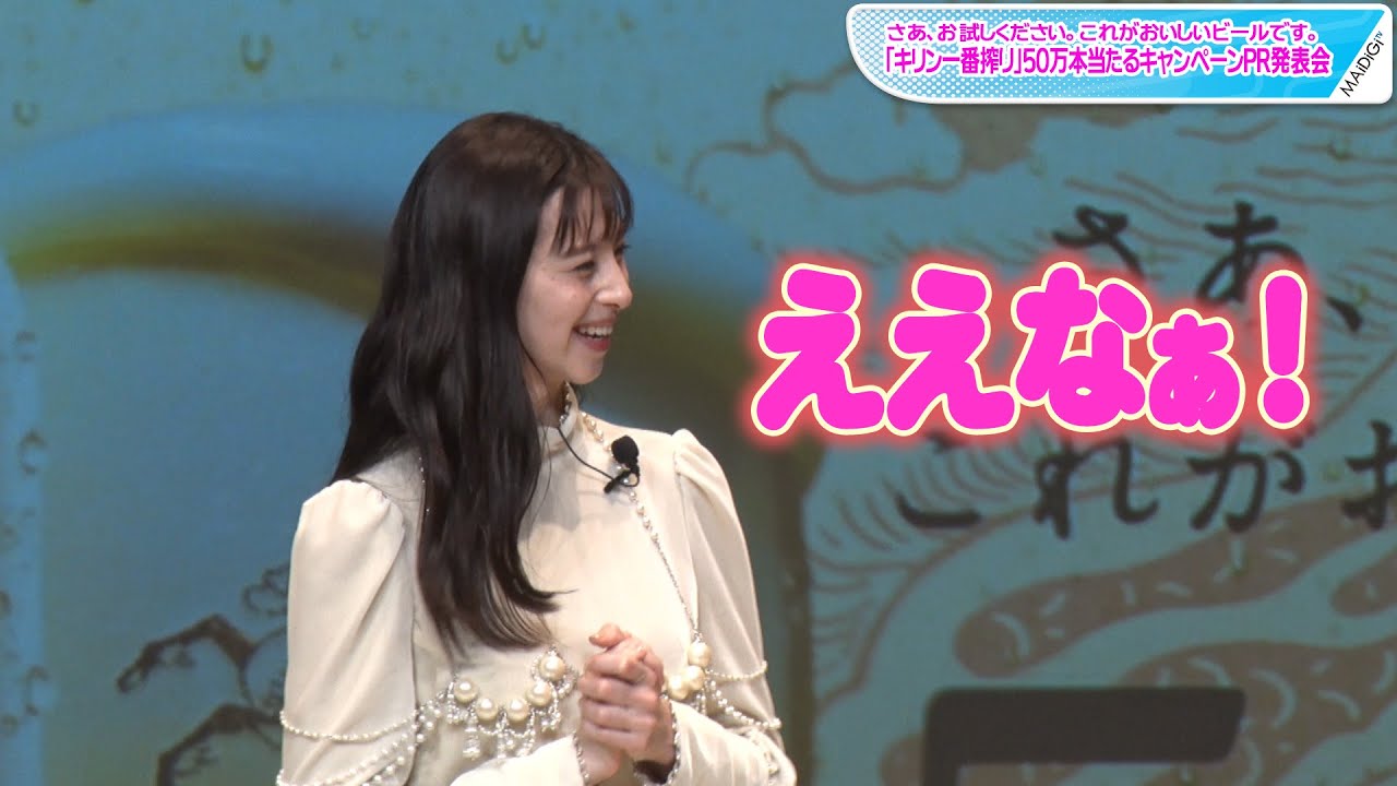 発表会には、中条さんとともに同商品のCMに出演している俳優の堤真一さん、八嶋智人さんも出席した。50万本の「一番搾り」が当たるキャンペーン「さあ、お試しください。これがおいしいビールです。『キリン一番搾り』50万本当たるキャンペーン」が発表された。キャンペーンは26日から。