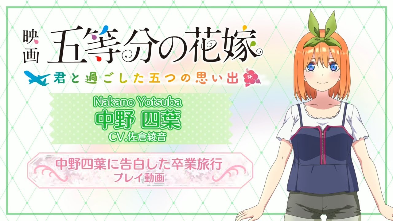 本プレイ動画では、中野四葉(CV:佐倉綾音)との卒業旅行の一部を紹介♪