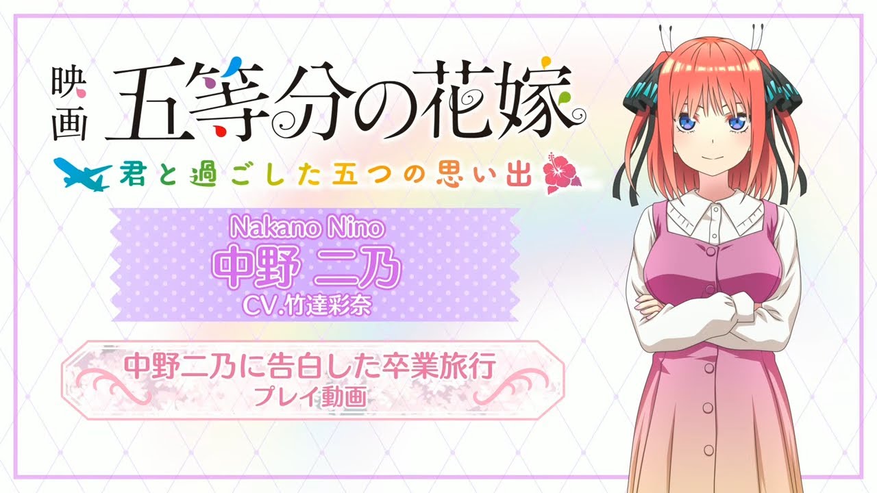本プレイ動画では、中野二乃(CV:竹達彩奈)との卒業旅行の一部を紹介♪