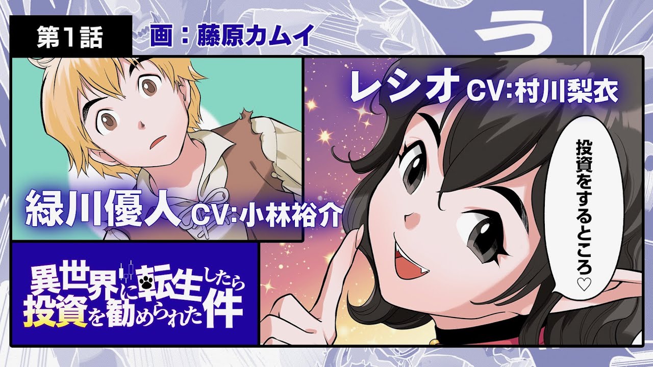 「異世界転生」と「投資」が融合した漫画動画が誕生!「異世界に転生したら投資を勧められた件」の第1話を2021年11月19日公開!藤原カムイが自身初の異世界転生ジャンルの作画に挑む!?キャラクターボイスには「Re:ゼロから始める異世界生活」でも共演した小林裕介と村川梨衣。