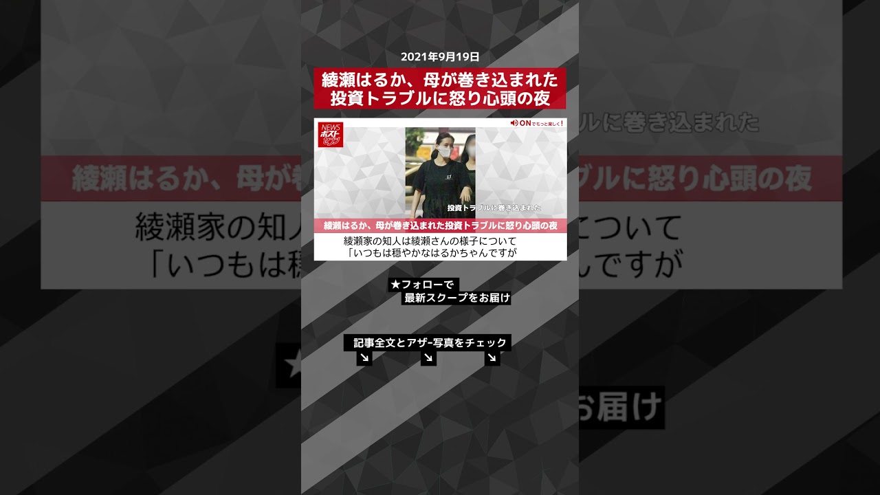 【ショート動画】綾瀬はるか、母が巻き込まれた投資トラブルに怒り心頭の夜 NEWSポストセブン #shorts
