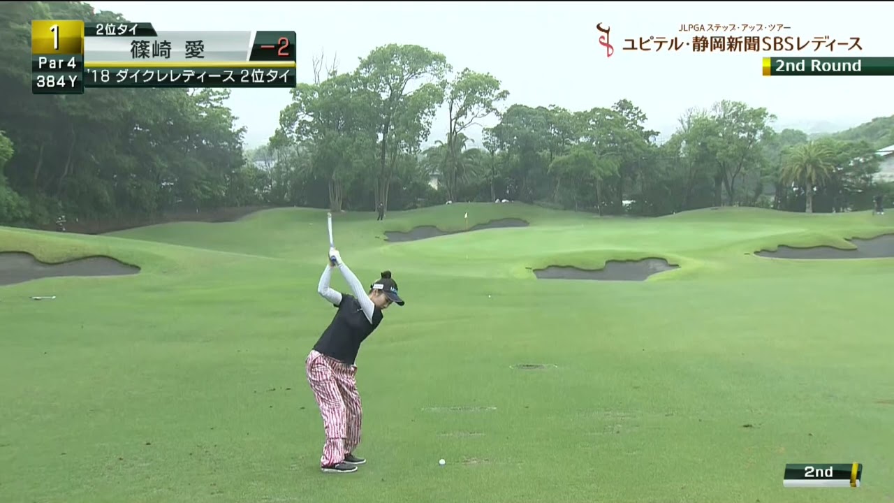 前日2アンダーで2位タイのアイドル顔負け美人ゴルファー・篠崎愛が1番ホールから魅せた!1位タイへ。