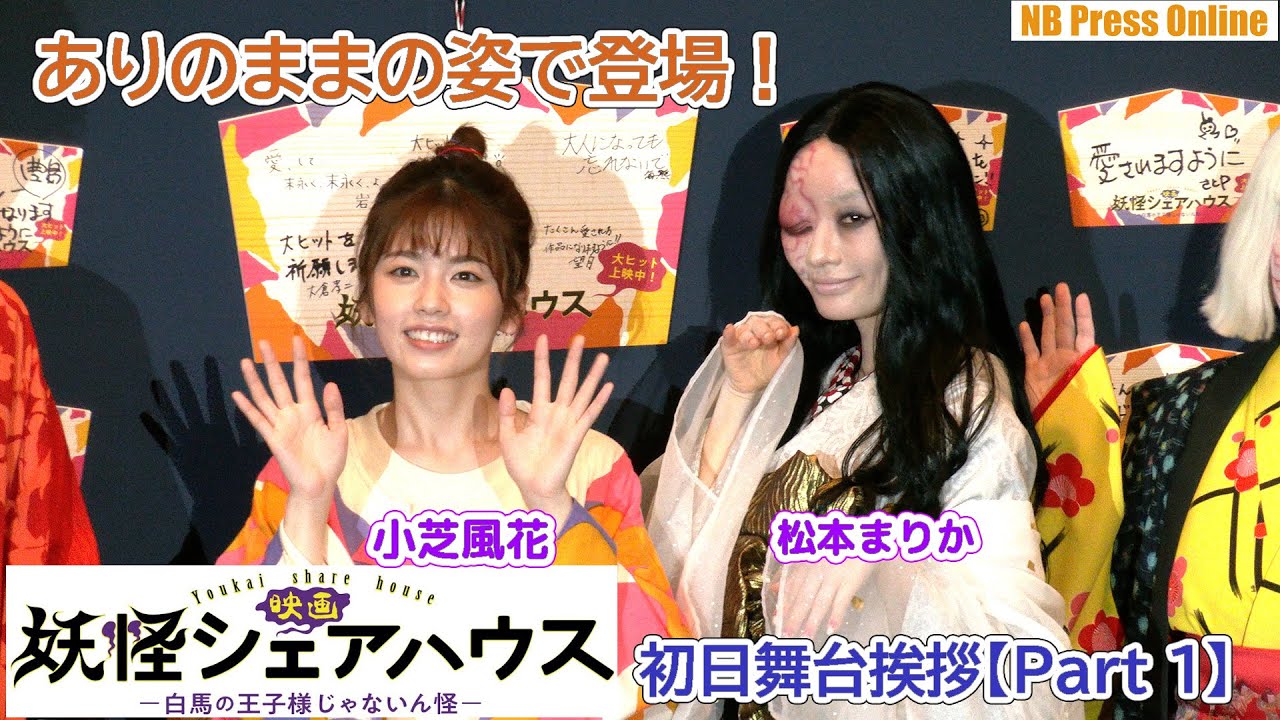 (見どころ頭出しあり)2022年6月17日、新宿バルト9にて、『映画 妖怪シェアハウス―白馬の王子様じゃないん怪―』初日舞台挨拶が行われ、小芝風花、松本まりか、毎熊克哉、池谷のぶえ、大倉孝二、望月歩、豊島圭介監督が登壇。キャストらはついに本来の妖怪の姿で登場した。