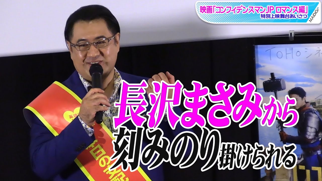 俳優の小手伸也さんが11月18日、TOHOシネマズ セブンパーク天美(大阪府松原市)で開催された映画「コンフィデンスマンJP ロマンス編」(田中亮監督)特別上映の舞台あいさつに登場。2022年1月14日公開の新作「英雄編」では小手さんが、主演の長澤まさみさんから、頭に刻みのりを掛けられるシーンがあるといい、「何の相談もない、ダー子ちゃん(長澤さん)のアドリブです」と明かしていた。