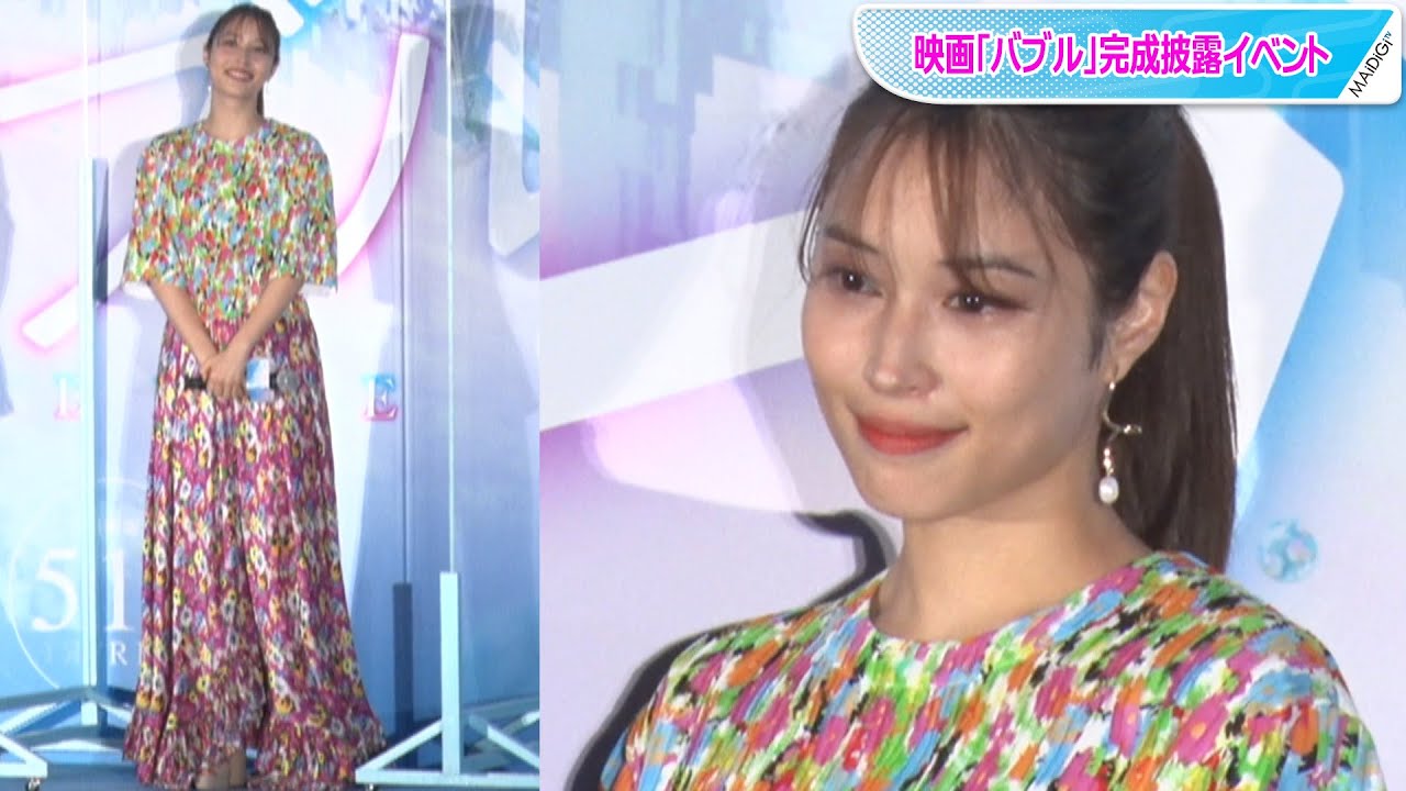 女優の広瀬アリスさんがこのほど、東京都内で行われた、声優を務める劇場版オリジナルアニメ「バブル」(荒木哲郎監督、5月13日公開)の完成披露イベントに出席した。カラフルな半袖トップスとスカートのような華やかな装い。パール系のイヤリングとポニーテールが上品で可愛い印象だった。