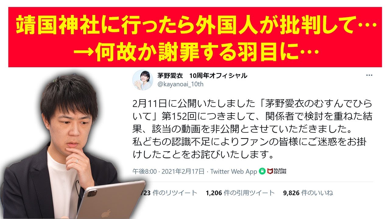 靖国神社を参ることで、自分だけでなく、作品も巻かされ、更に事務所や他の声優に迷惑をかかるより、僅か一つの謝罪と動画の削除だけで収めればたいやすいでしょう