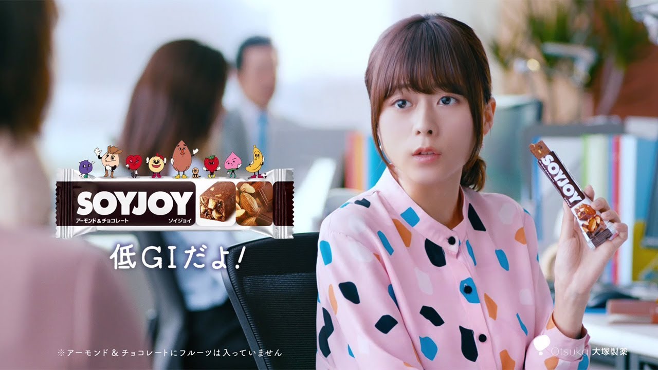 CMは、SOYJOYに含まれる原材料を表現したキャラクターたちが、同商品のGI値(糖質の吸収の度合い)が低いことを伝える。水瀬さんは一人でフルーツやナッツなどのキャラクターを演じる。