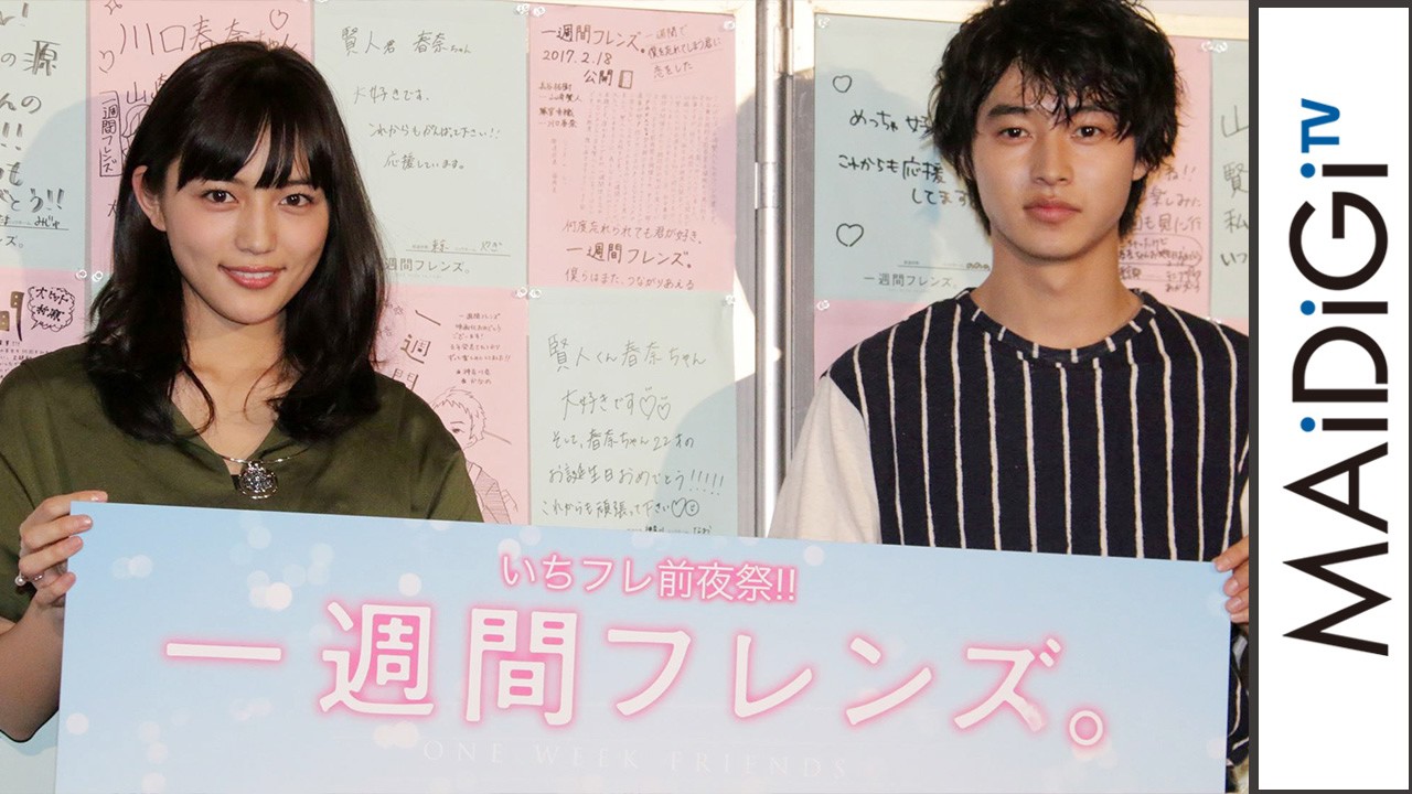 「一週間フレンズ。」は、葉月抹茶さんが「月刊ガンガンJOKER」(スクウェア・エニックス)で2012~15年に連載した人気マンガが原作。14年4~6月にテレビアニメが放送され、舞台版も上演された。映画は、川口さんと山崎さんのダブル主演で、高校2年生の長谷祐樹(山崎さん)が、1週間で友達の記憶を失ってしまうクラスメートの藤宮香織(川口さん)にひかれ、交換日記で距離を縮めるが、ある日、香織の過去を知る転校生・九条一(上杉柊平さん)が現れる……というストーリー。