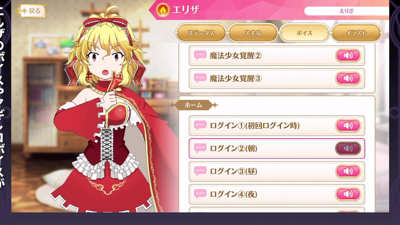 エリザのボイストック作成しました! https://www.voistock.com/playlist/detail.php?pk=7K87Y7SLC 2019年7月12日から登場した星4魔法少女エリザの変身シーンとボイス一覧です。 星5まで覚醒させております。途中で星5の覚醒イラストに変わります。 CVは沢城みゆきさんです。 変身シーン 00:01- ボイス一覧 00:34- 覚醒絵 05:59- #マギレコ #マギアレコード#常夜の国の叛乱者 Tags:one pieceエルザボイスマギレコ常夜の国の叛乱者沢城みゆき 12 comments 沢城さん! さすが!沢城さん、いい声してらっしゃる! What is Nero doing on Magia Record? FINALLY SHE'S HERE!! エリザの声Fateのモーさんか。 神原美しい アルシーヴとランプとマッチとクレアというきららファンタジアのオリキャラ勢揃い。嬉しすぎて、あばばばばー! 朝田さんが魔法少女になった。 なんか、モーさんのコスチュームに似てるかも 沢城みゆきの声だ 聴いた事有ると思ったらジョジョゲーの徐倫の声の人や! 赤色に由縁があるのかな?沢城さん コメントを残すコメントを投稿するにはログインしてください。
