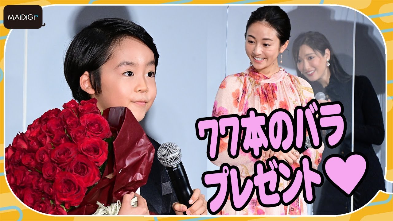 女優の木村文乃さんが10月17日、東京都内で行われた、公開中の主演映画「七人の秘書 THE MOVIE」(田村直己監督)の舞台あいさつに登場した。19日に35歳の誕生日を迎える木村さんへのバースデーサプライズとして、子役の川原瑛都(えいと)君が77本のバラをプレゼントすると「めちゃくちゃうれしいです。実は私、バラの花束もらったの初めて」と笑顔をはじけさせた。
