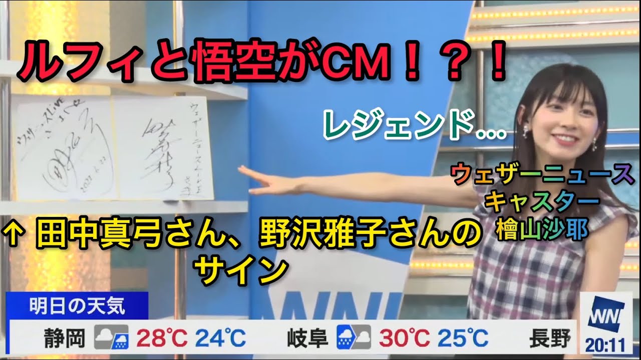なんと…新CMにあのレジェンド声優の田中真弓さんと野沢雅子さんがさご出演!!! そのうえ、番組にサインまで!!! Tags:ウェザーニュースウェザーニュースLiveおさやキャスターユカリンルフィ悟空檜山沙耶田中真弓白井ゆかり野沢雅子 7 comments ルフィと悟空と言うなら、作品統一してクリリンと悟空でええやん 冒頭の表情が悪天候気味で 白井さんは何気に理解せずに話をさやっちに合わせているような・・・ま、さやっちはガチだからなw 獣神ライガー สาก็สวยรูปร่างหน้าตาบุคลิกคำพูดถูกใจพี่มากมาก..เช่นโย. 悟空とクリリンですねドラゴンボールはジャンプは最初の天下一武道会から立ち読みしました ワンピースは単行本しか見てないアニメは見てないから コメントを残すコメントを投稿するにはログインしてください。