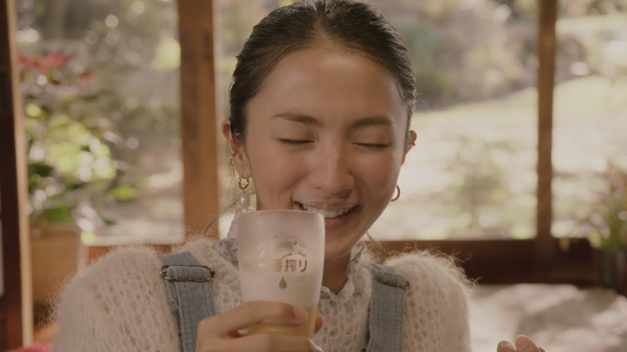 おばあちゃんの家に集まり、おいしいビールやカニを楽しみながら笑顔こぼれる満島さん。