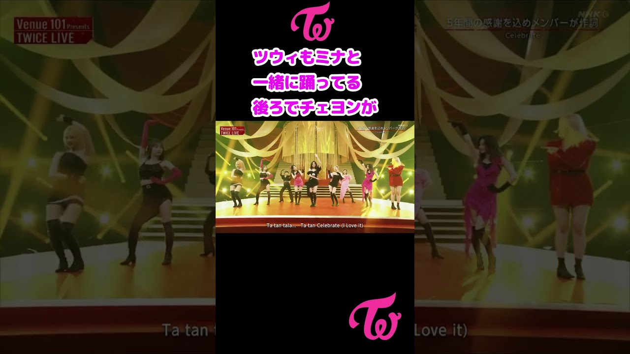 Twice ツウィ ミナと一緒に踊ってる 後ろのチェヨン気づいて笑ってる。