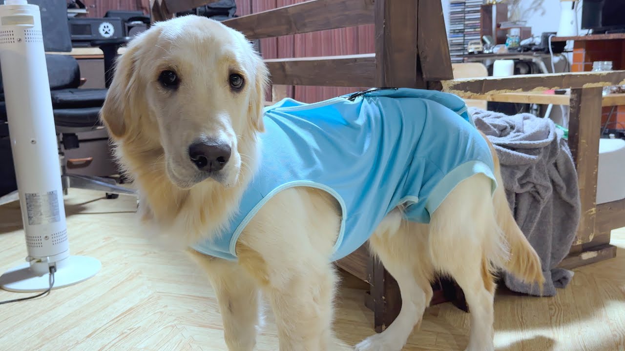 エリザベスカラーつけて俯いて動かなくなるマックス、かわいそかわいい笑