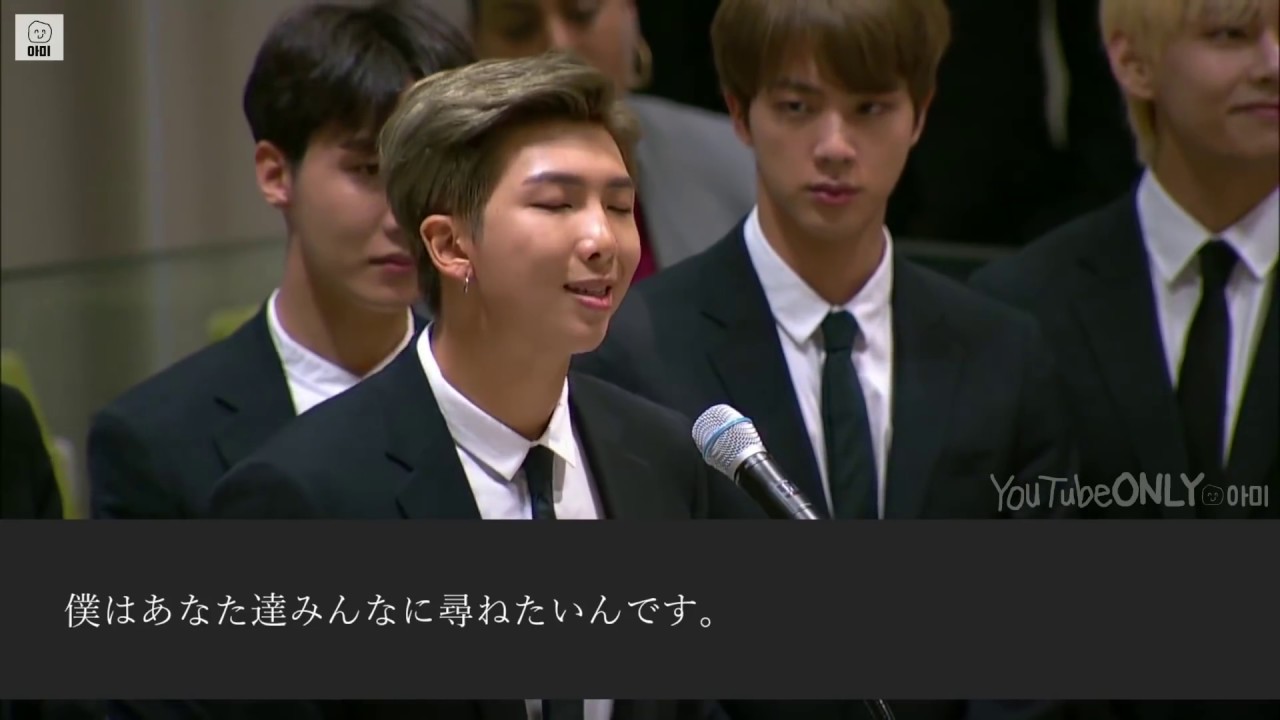 この動画は英語の授業でプレゼンとかスピーチとかやる前の日に見て勇気貰ってます🙏🏻国連でスピーチしてるナムを見てると、クラスでスピーチすることなんてちっぽけに感じて堂々と言えるので感謝してるし尊敬してます🥲🤍