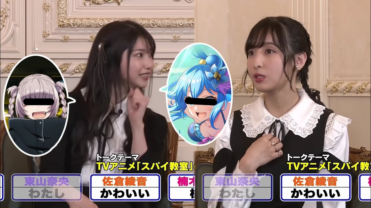 #スパイ教室 #雨宮天 #佐倉綾音 #楠木ともり #梅原裕一郎 #東山奈央 #声優 #リリィ Tags:あやねるかわいいともりるなおぼう可愛い天さん天ちゃん綺麗美人雨宮天 11 comments あら〜よく聞く名前と声です。ところで奈央さんは? 近年は真っ当なヒロインも多く演じてるので、アクアのキャラは逆にレアな印象があります。■切り抜き元動画【スパイ教室】世界最強の騙し合い「極上スパイミッション第1回」【2023.01.05.ONAIR】https://youtu.be/qEtLVXtrHwM■1/5放送当日リリィhttps://twitter.com/spyroom_anime/status/1610833592828952578?t=z0FFiKqmCRXEo_Ed0X9Bgw&s=19 1:50 の負けて速攻足を組む天さん、そしてお嬢様っぽく突っ込むあやねるが最高! 切り抜き外ですが年末に英検2級を取得された天さんが、NGワード回避のためにやたら横文字を使うくだりも笑いが止まりませんでした。 リアルでアクア様かw 上手い攻め Sasuga Aqua-sama 笑わなければ、雨宮さんは勝てたな。 アクアははっちゃけすぎてるけどなw Tomoriru trapped her fairly easily. 流石ともりる 0:34 あやねると天ちゃんの前共演してた(絡みもあった)作品考えてたら分からなくなった東京喰種?オーバーロード?どっちも絡みあったか自信ない… コメントを残すコメントを投稿するにはログインしてください。