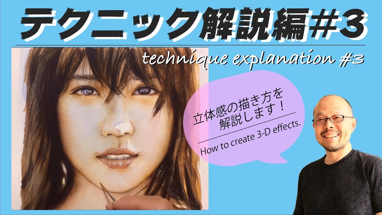 水彩でここまで人物を写実に描いている動画を初めて見ました。