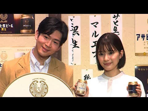 芳根京子と松下洸平が、「アサヒ生ビール」の新CM発表会に出席した。