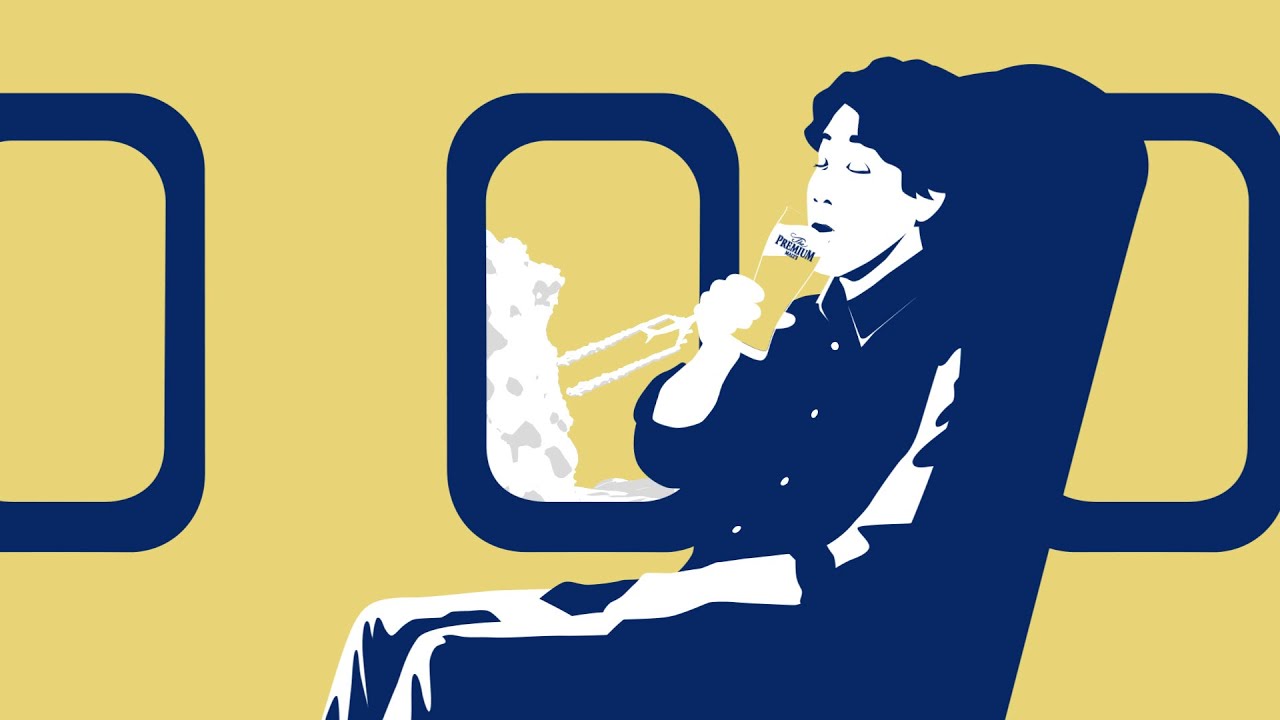 ビールの泡から飛行機が飛び出し、