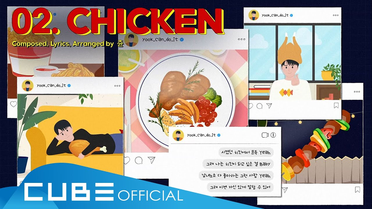 “CHICKEN” is a song that describes YOOK SUNGJAE’s wish to be loved for a long time like the timeless fried chicken that everyone loves in witty lyrics. The song has the cheerful and pleasant beat, the repeated light piano melody and the groovy bass sound as well as YOOK SUNGJAE’s unique energy and bright mood.
