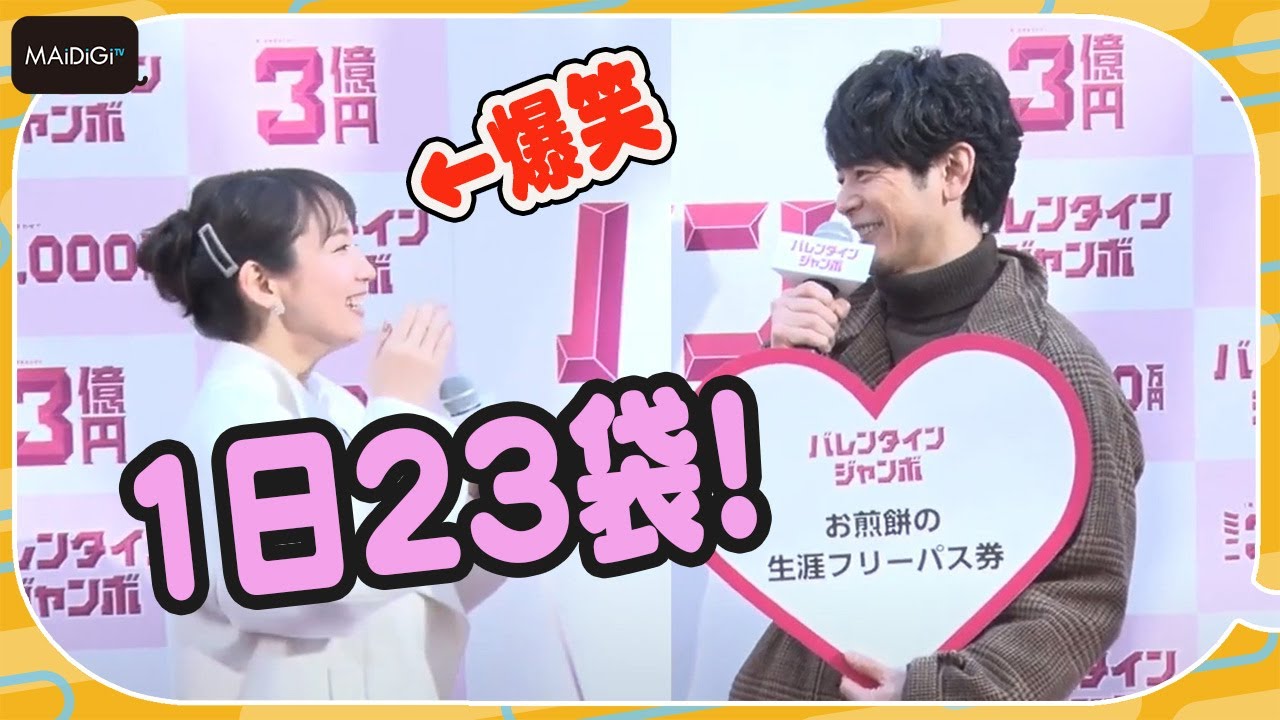 女優の吉岡里帆さんと俳優の妻夫木聡さんが2月1日、東京都内で行われた「バレンタインジャンボ宝くじ」「バレンタインジャンボミニ」発売記念イベントに登場した。