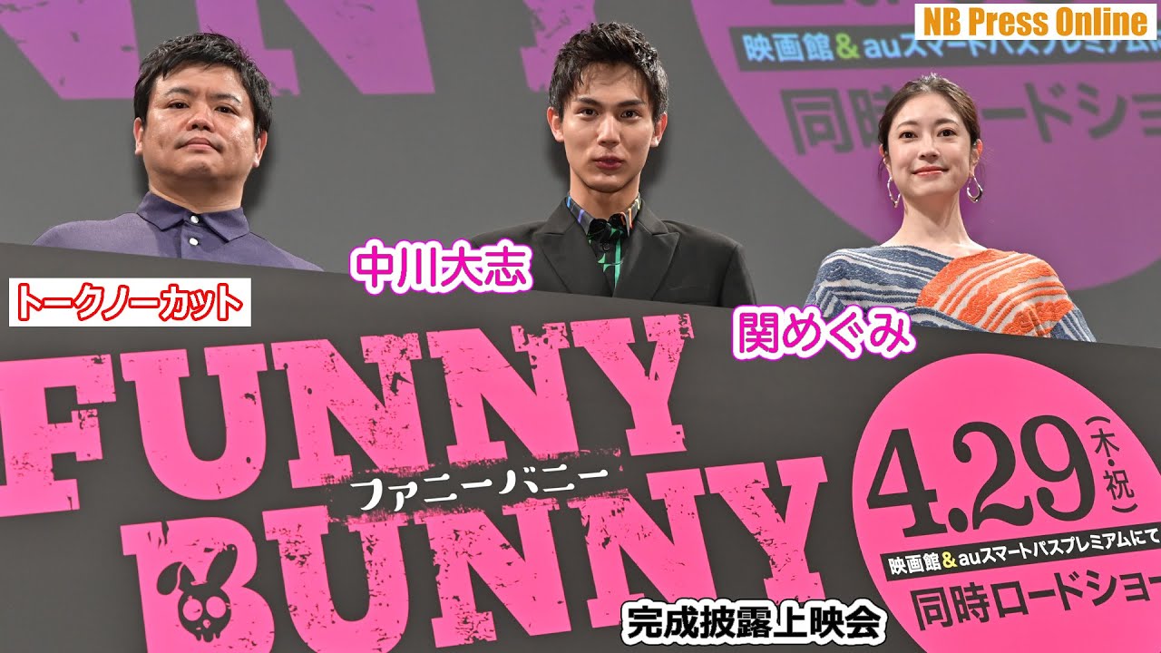 2021年3月30日、都内にて、映画『FUNNY BUNNY(ファニーバニー)』の完成披露上映会が行われ、上映前に、主演・中川大志、関めぐみ、飯塚健監督が登壇。映画化が決まってからあっという間の公開への驚きと感謝を語った。