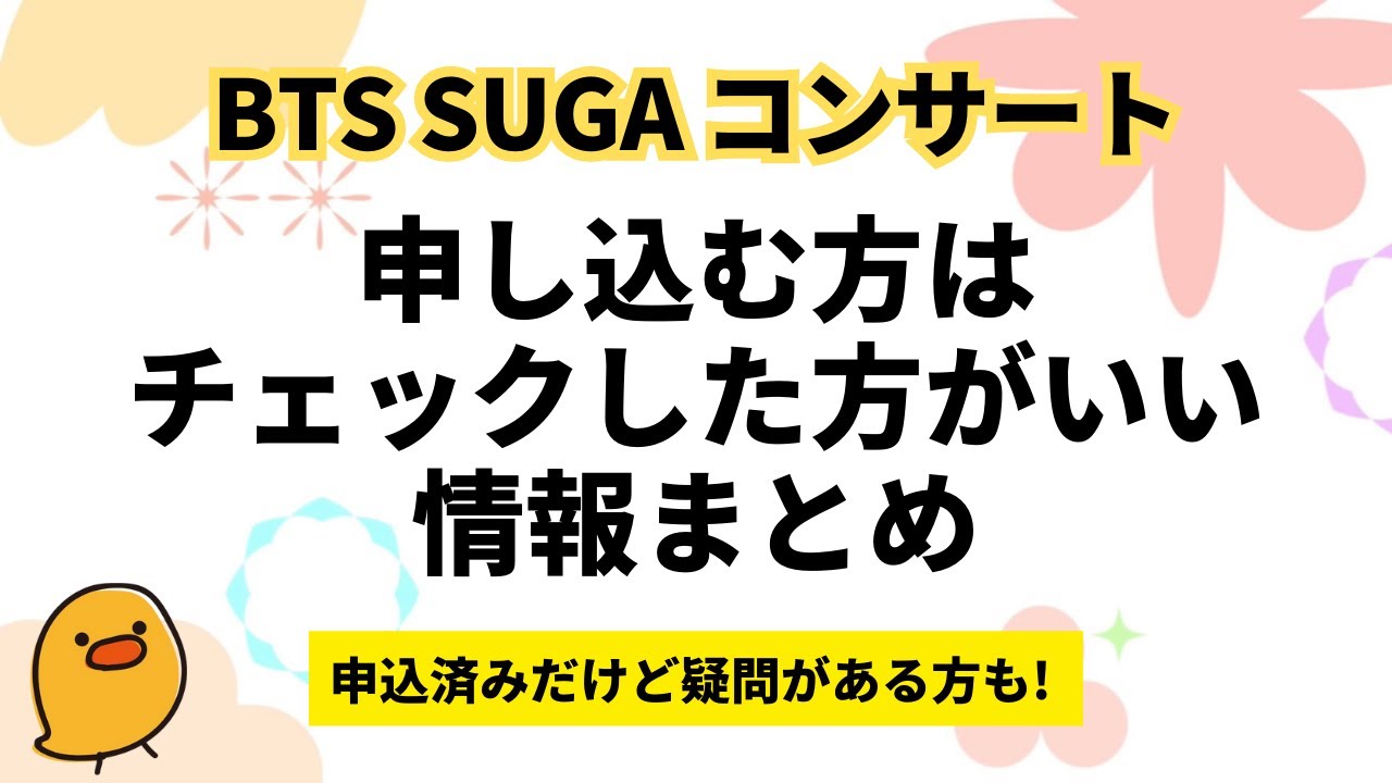 🐥さん、いつも有り難うございます。情報上げて頂いたのに、sugaさんのコンサート、一年前から入っていた予定と重なってしまい、コンサート行くことが出来ません。楽しみにしてたのですが、😢😢😢