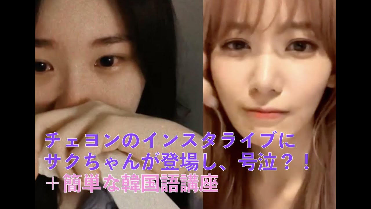 [IZ*ONE、日本語字幕] チェヨンのインスタライブにサクちゃんが登場し、チェヨンが号泣!?+簡単な韓国語講座