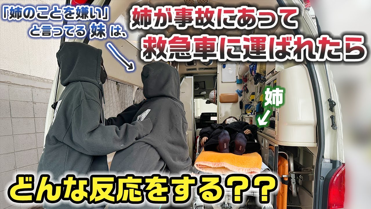 ドッキリの内容は、もしも仲が悪い姉が事故にあって救急車で運ばれたら妹はどうするのか??というドッキリです!(※今回は撮影用の救急車をレンタルしていて、ろこも事故に実際に会うわけではないのでご安心ください!)