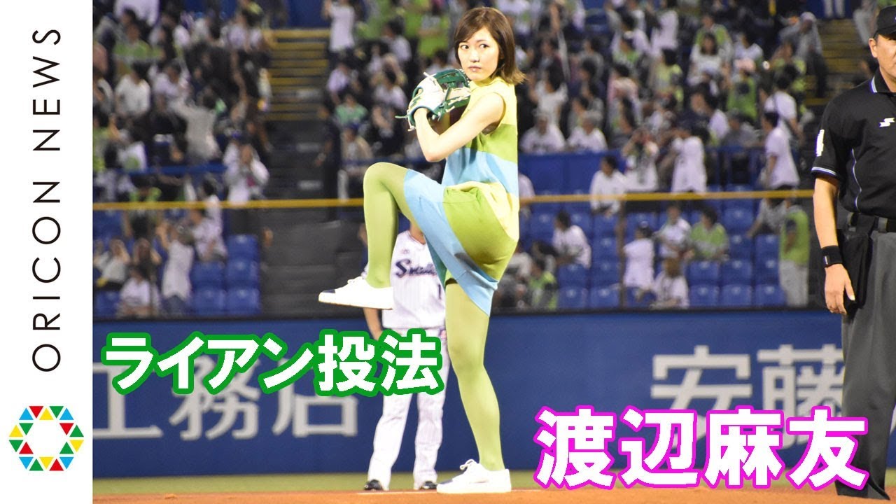 元AKB48で女優の渡辺麻友(24)が19日、東京・神宮球場で行われたプロ野球『東京ヤクルトスワローズ対阪神タイガース』の始球式に登場。人生初となる始球式で、ヤクルトの“ライアン小川”こと小川泰弘投手(28)の足を大きく上げるフォームを真似てピッチングしたものの、惜しくもツーバウンドとなった。