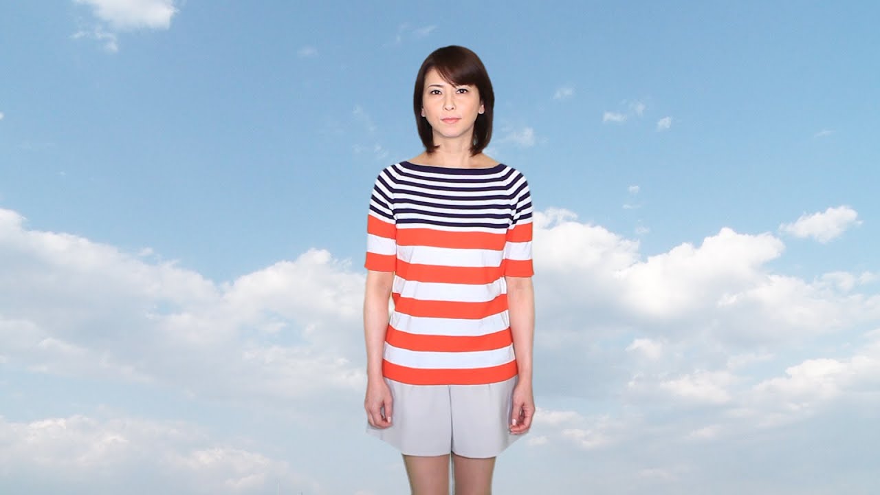 今の季節にピッタリな、背景の青空と爽やかなファッションの千里さん、いいですねー♪癒されました。