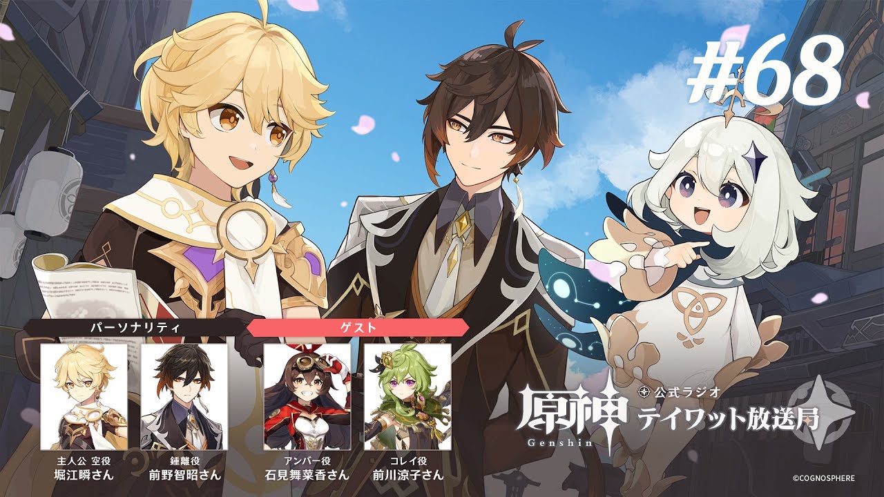 主人公(空)役の堀江瞬さん、パイモン役の古賀葵さん、鍾離役の前野智昭さんの3名が入れ替わりでパーソナリティを担当し、「原神」の魅力をお伝えする番組です。