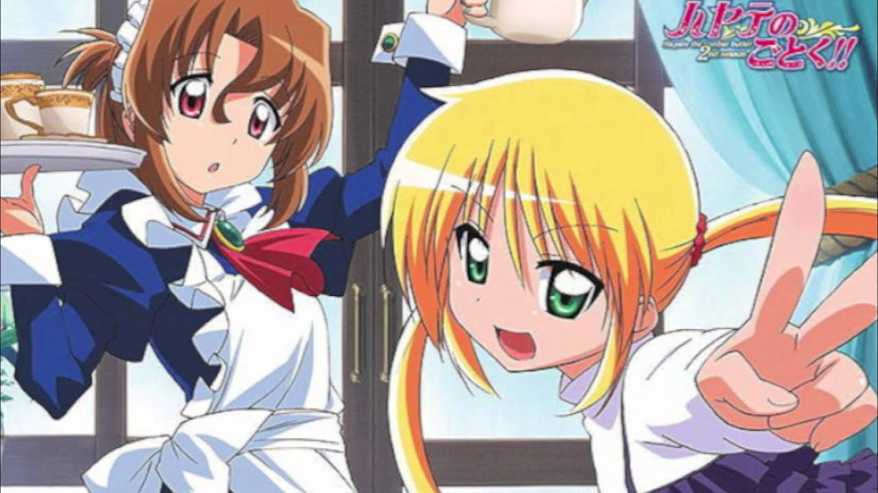 Sanzenin Nagi/三千院ナギ (CV: Kugimiya Rie/釘宮理恵) and Maria/マリア (CV: Tanaka Rie/田中理恵) from Hayate the combat butler/ハヤテのごとく! sing a cover version of an insert song, “Top wo Nerae! 〜Fly High〜” (「トップをねらえ!〜Fly High〜」、”Aim for the Top! 〜Fly High〜”), from Gainax’s 1988 OVA (Original Video Animation) series, Top wo Nerae!/トップをねらえ!/AIM FOR THE TOP! GUNBUSTER.