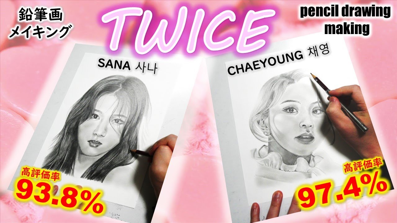 TWICEのメンバーから、チェヨン(CHAEYOUNG 채영)とサナ(SANA 사나)2人の鉛筆画メイキング動画になります。